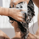 手のひらに3~4回押し出し、泡立つまで揉む。濡れた髪につけてマッサージする。